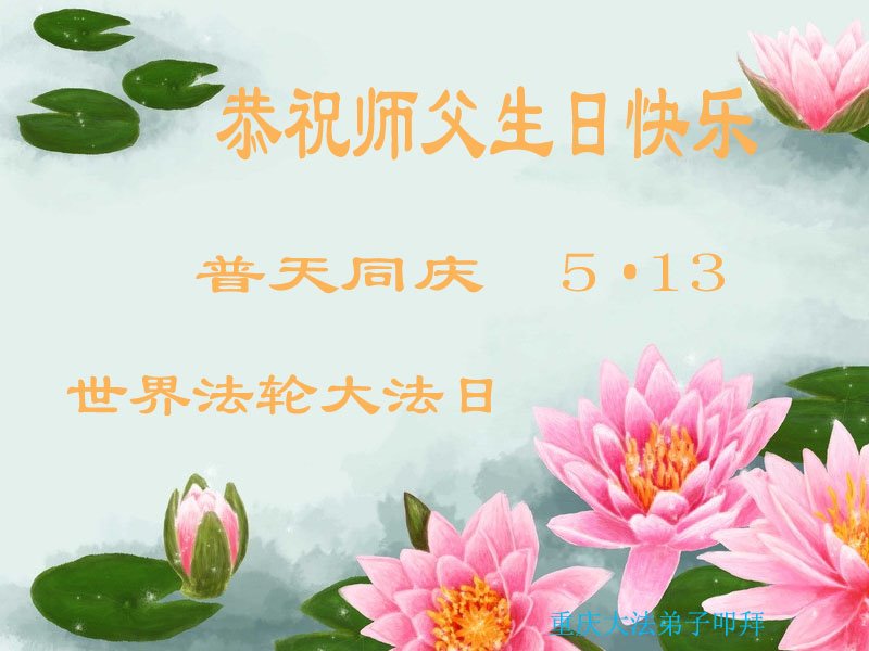 重庆沙坪坝区大法弟子恭祝师尊华诞!普天同庆5.13世界法轮大法日!师尊救度苍宇辛苦了! 重庆市南岸区大法弟子恭祝师尊生日快乐!