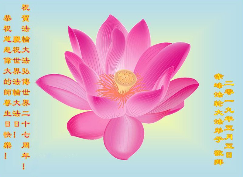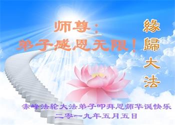 内蒙古赤峰市法轮大法弟子恭祝恩师华诞快乐!庆祝世界法轮大法日!祝贺法轮大法洪传世界二十七周年!