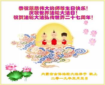 内蒙古全体法轮大法弟子祝贺法轮大法洪传世界二十七周年!恭祝师尊华诞快乐!庆祝世界法轮大法日!