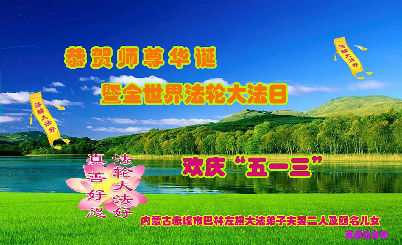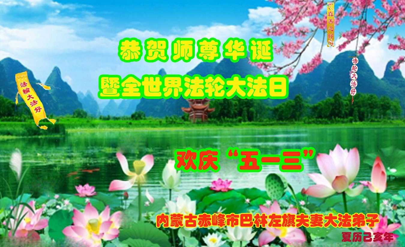 内蒙古赤峰市巴林左旗夫妻大法弟子恭祝师尊华诞!恭贺全世界法轮大法日!
