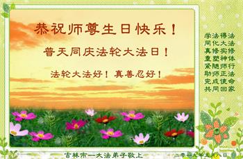 吉林市一大法弟子恭贺世界法轮大法日暨师尊华诞!