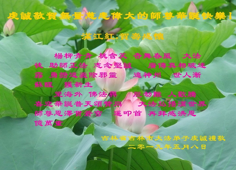【明慧网二零一九年五月十一日】 吉林市大法弟子恭祝师父生日快乐!