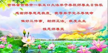 吉林省吉林市一家五口大法弟子恭贺法轮大法日