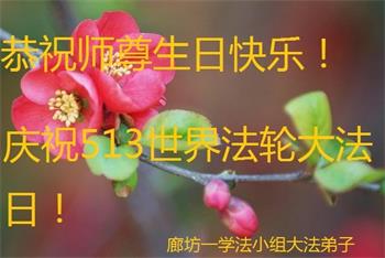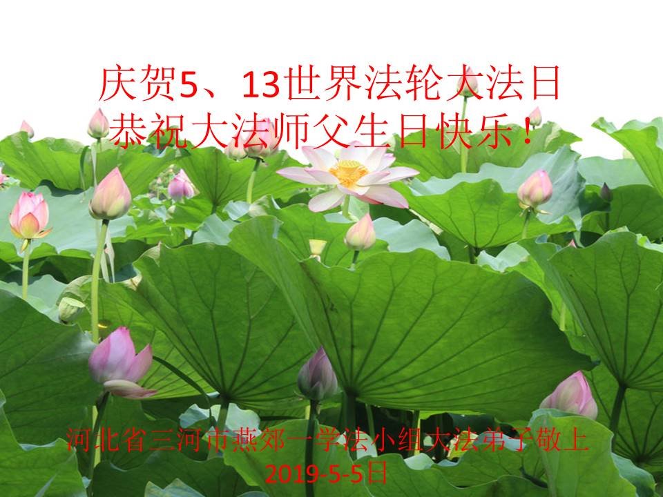 【明慧网二零一九年五月十一日】 河北省廊坊大法弟子恭祝师尊生日快乐!庆祝513世界法轮大法日!
