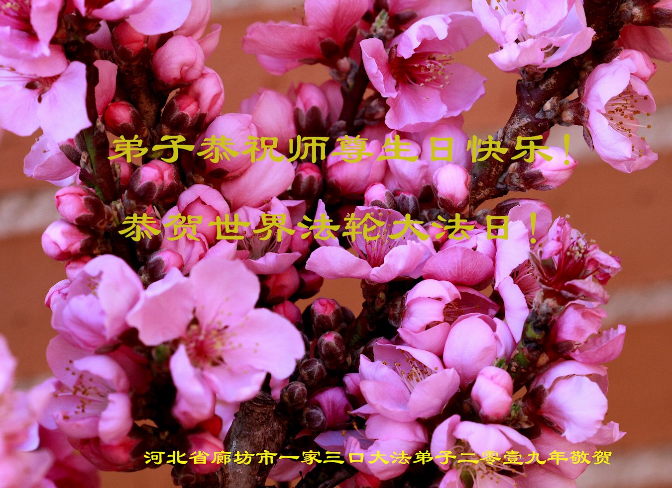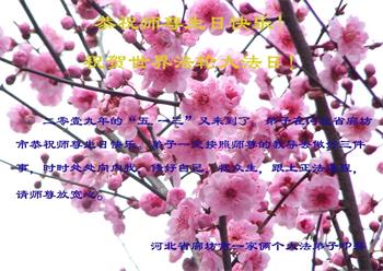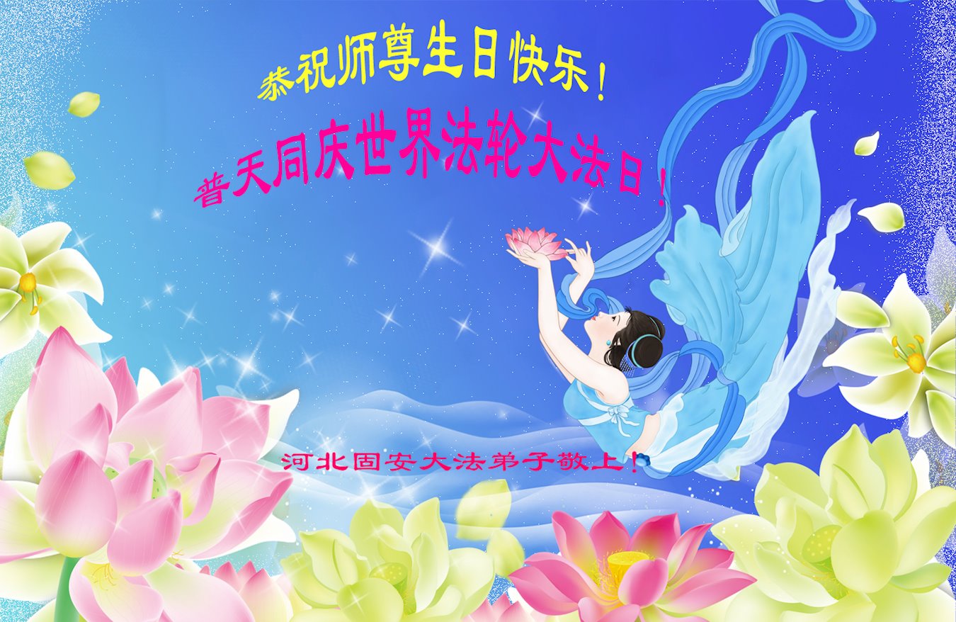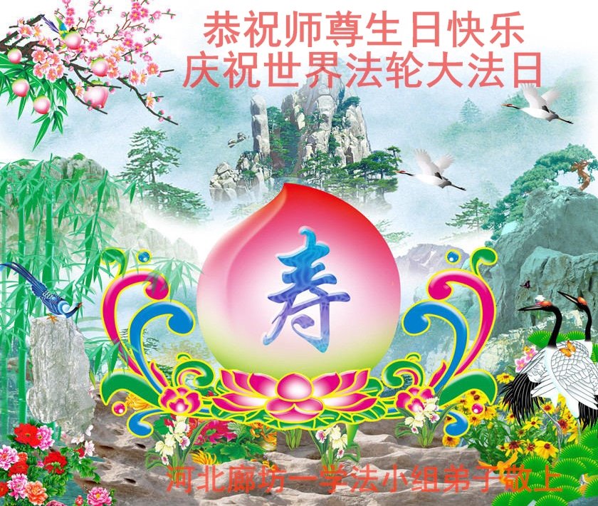 河北廊坊大法弟子恭祝慈悲伟大的师尊生日快乐!恭祝法轮大法洪传世界27周年!