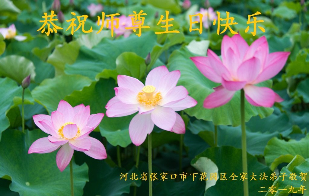 河北张家口全家十一名大法弟子恭祝慈悲伟大的师尊生日快乐!