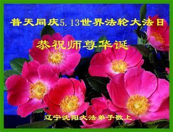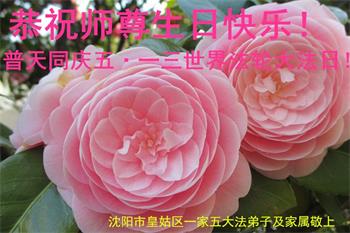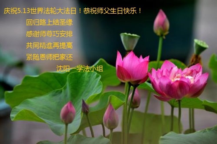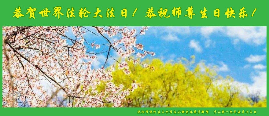 沈阳市沈北新区一大法弟子恭祝师尊生日快乐!恭贺世界法轮大法日! 辽宁沈阳一学法小组大法弟子恭贺世界法轮大法日!恭祝师尊生日快乐!