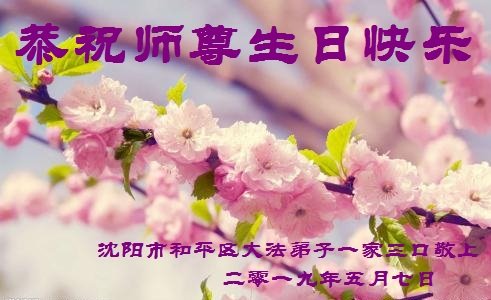 辽宁省沈阳市和平区大法弟子一家三口恭祝师尊生日快乐!