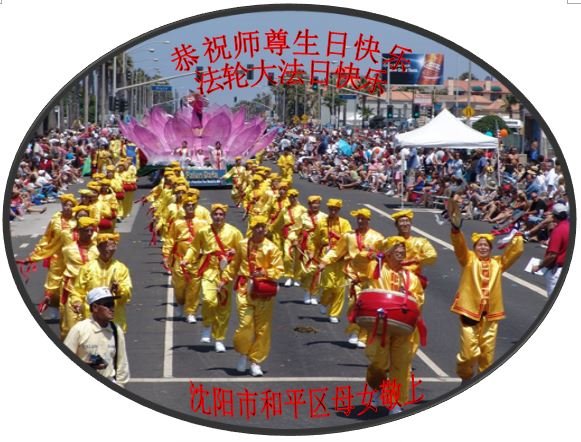 沈阳大法弟子恭祝慈悲伟大的师尊生日快乐!师尊您辛苦了,弟子一定珍惜师尊延续来的宝贵时间,多学法,修好自己,多救人,不辜负师尊的期望,不辜负众生盼望,感恩慈悲伟大的师尊救度之恩。 辽宁省沈阳市皇姑区一家五大法弟子及家属恭贺法轮大法日!恭祝师尊生日快乐!