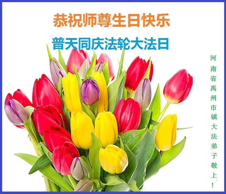 在全球恭迎世界法轮大法日到来之际,我们仰望师恩泪水夺眶而出,在这正法的最后时刻,我们一定要放弃顽固的执着,修好自己,把真相传给更多的有缘人,众生随师回家。 中国大陆河南周口一大法弟子恭祝伟大慈悲的师尊生日快乐!