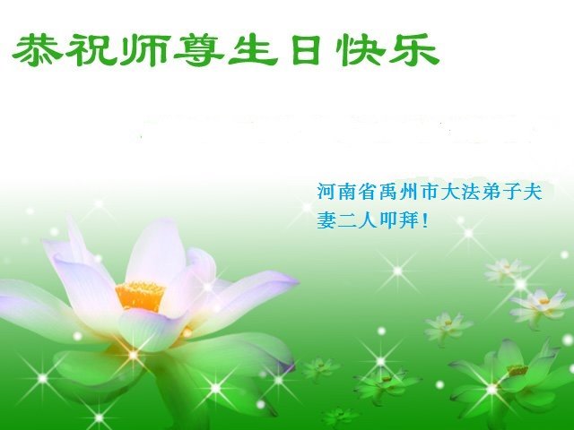河南周口夫妻大法弟子恭祝师尊生日快乐!
