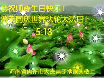 河南省焦作市大法弟子携家人恭祝师尊生日快乐!
