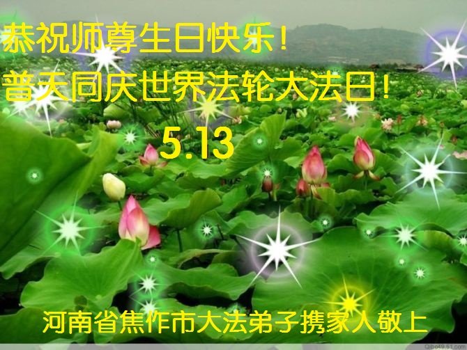 河南省濮阳市一家大法弟子恭祝师尊生日快乐!庆祝世界法轮大法日!