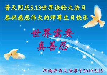 河南许昌大法弟子贺师尊华诞暨世界法轮大法日!