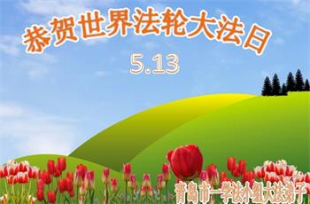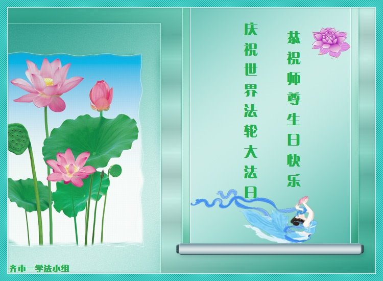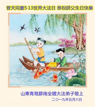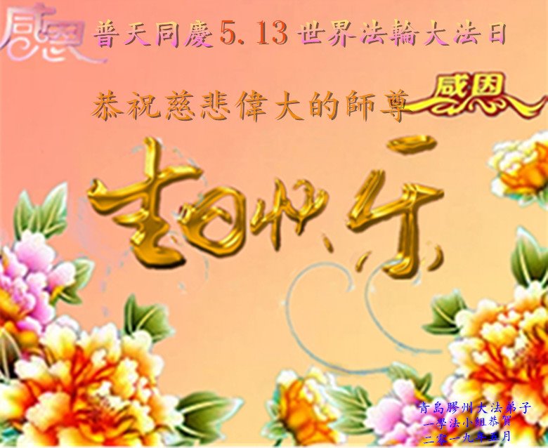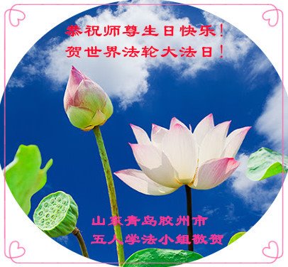 山东省青岛市一学法小组大法弟子恭祝师尊生日快乐!暨庆祝世界法轮大法日!