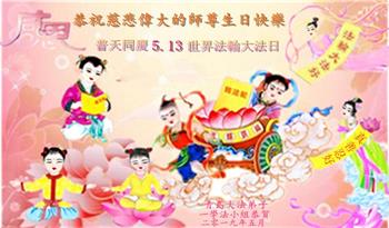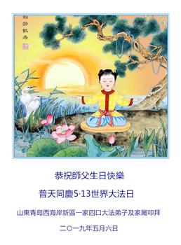 山东青岛西海岸新区一家四口大法弟子及家人恭祝师父生日快乐!恭贺5·13世界法轮大法日! 山东省青岛一学法小组大法弟子恭贺法轮大法日!