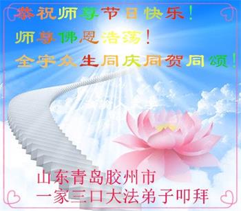 山东青岛胶南全体大法弟子恭贺法轮大法日!祝师父生日快乐! 山东青岛西海岸新区一家四口大法弟子及家人恭祝师父生日快乐!