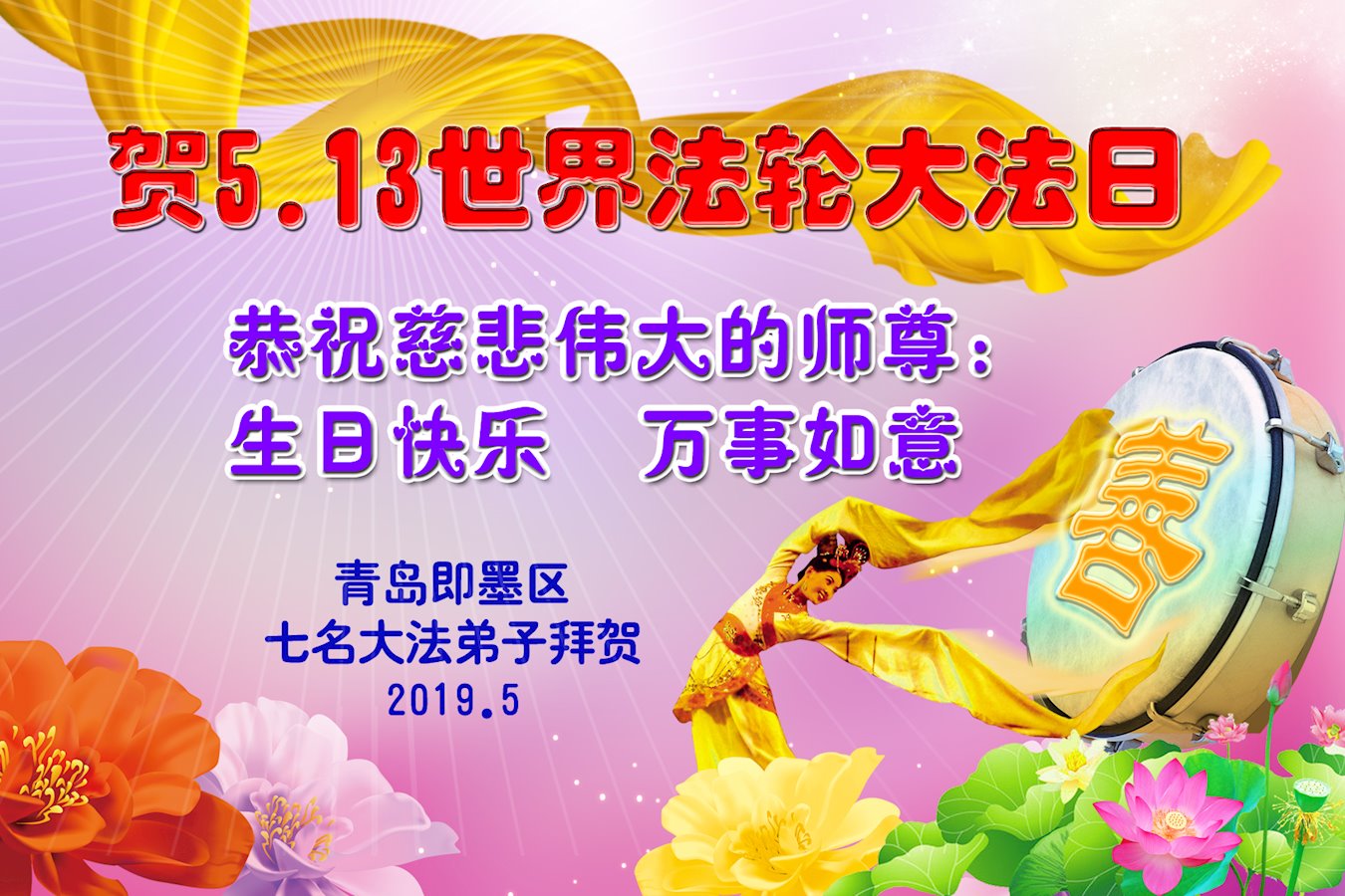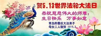 【明慧网二零一九年五月十一日】 山东省青岛市平度市大法弟子恭贺法轮大法日!