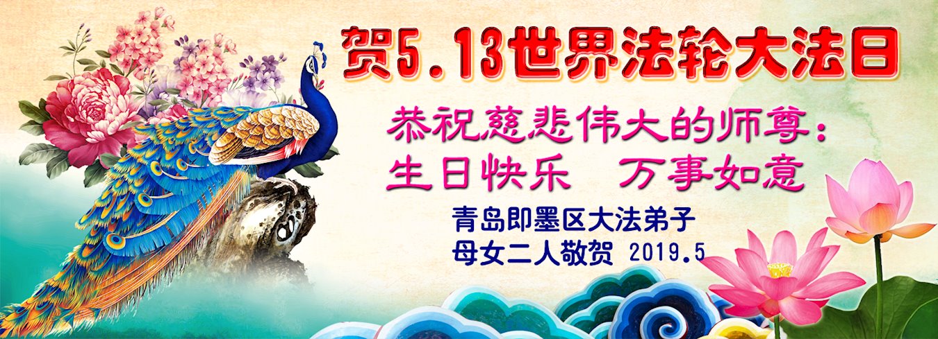 恭贺法轮大法日! 山东省青岛即墨区大法弟子母女二人恭祝师尊生日快乐!恭贺法轮大法日!