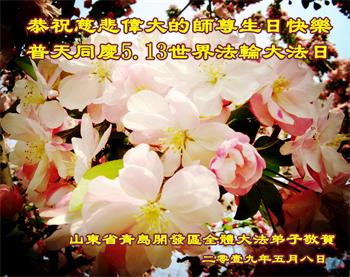 山东省青岛一大法弟子恭祝师父生日快乐!
