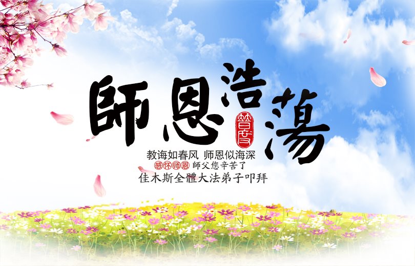 寒冬傲雪已过去 春暖花开万物生 师尊法理撒寰宇 层层众生在选择 不离不弃跟师走 让师放心回天国 师尊苦度亿万年 双手捧桃跪师恩 法理刻心不能迷 助师正法再继续 不管遇到风和雨 前行不能退一步 佳木斯市佳纺一学法小组敬上 黑龙江佳木斯市大法弟子恭祝师尊生日快乐!同贺世界法轮大法日!