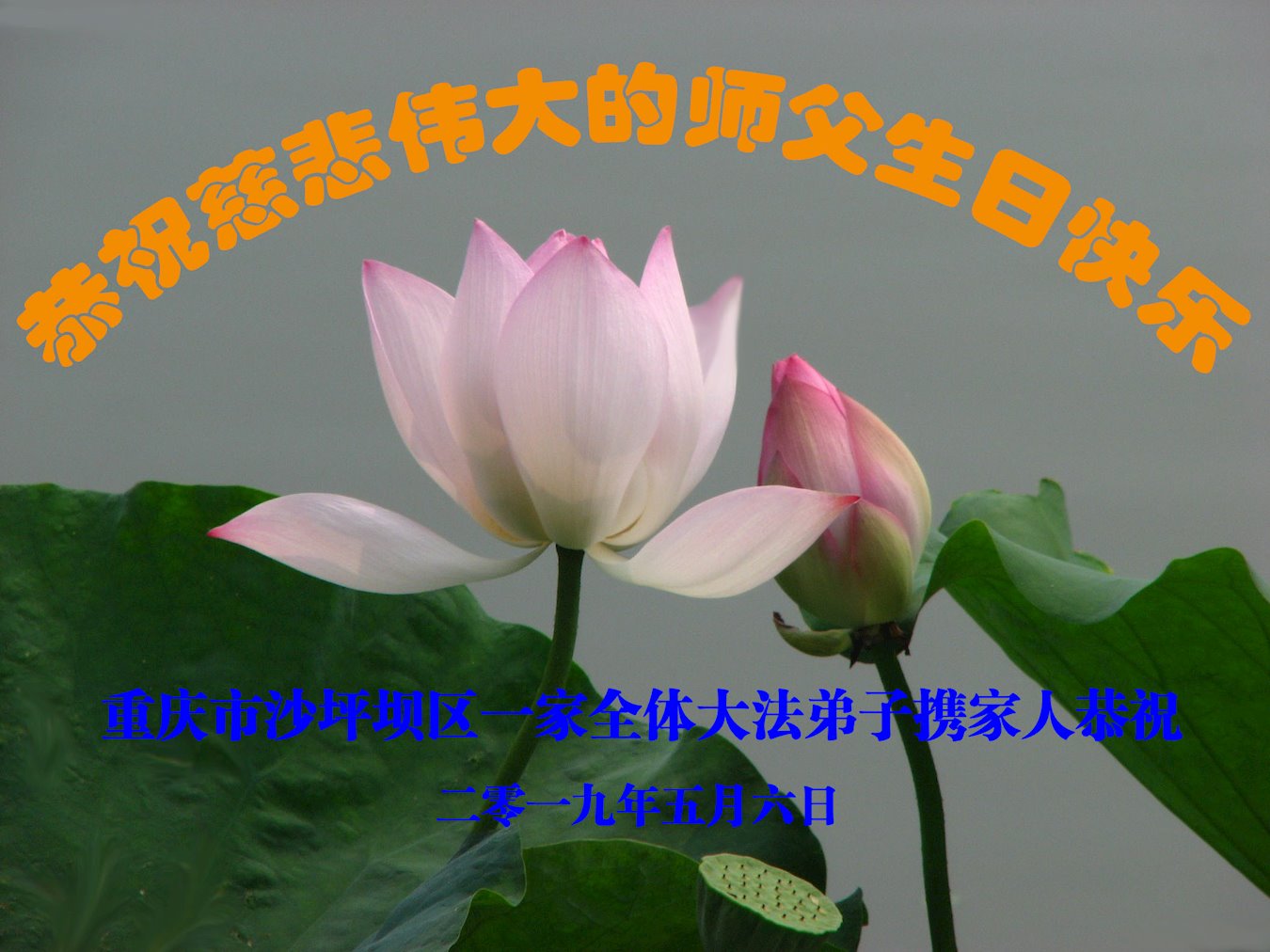 恭祝师父生日快乐! 庆贺世界法轮大法日! 重庆杨家坪大法弟子跪叩 二零一九年五月 重庆江北区一个三人学法小组大法弟子及其家人祝慈悲的师父生日快乐!同贺世界法轮大法日!