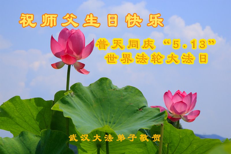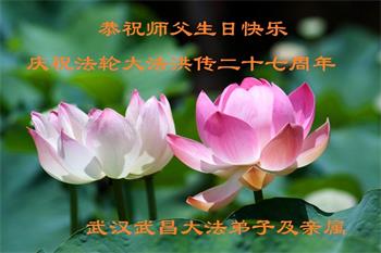 湖北省武汉市武昌区大法弟子新莲恭贺世界法轮大法日!恭祝师尊华诞!