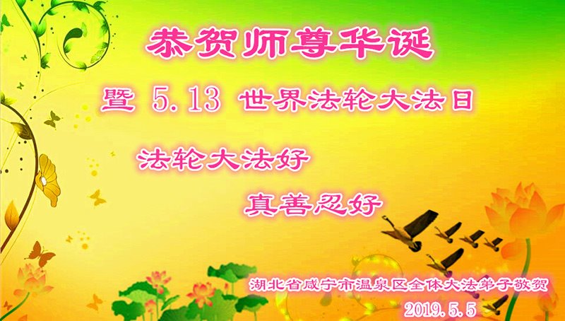 湖北省咸宁温泉区全体大法弟子恭祝师尊生日快乐!恭贺世界法轮大法日!