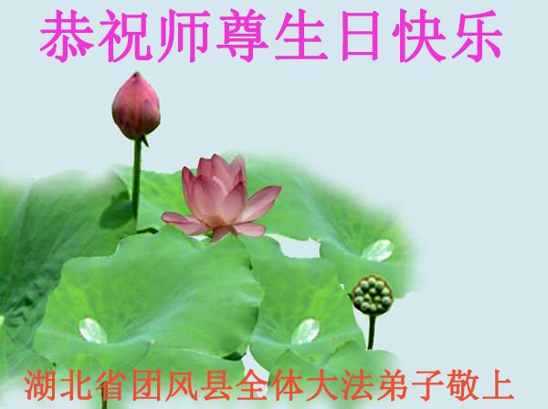 【明慧网二零一九年五月十一日】 湖北省黄冈市团风县全体大法弟子恭祝师尊生日快乐!恭贺世界法轮大法日!