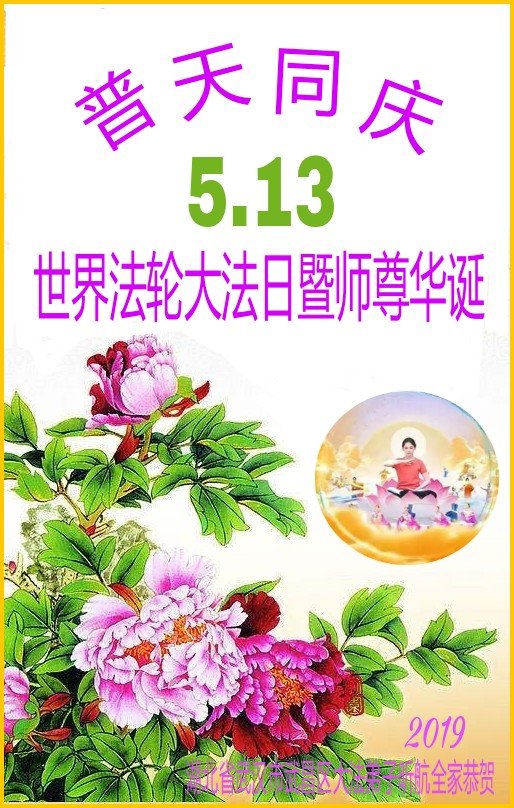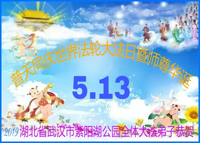 在5.13这普天同庆美好的日子即将到来时,我们向慈悲伟大的师尊问好!恭祝师尊生日快乐!恭贺世界法轮大法日! 武汉市汉阳区一夫妻大法弟子及家属敬上 合十 2019年5月6日 湖北省仙桃市全体大法弟子恭祝师父生日快乐!
