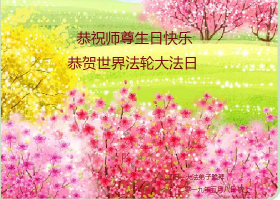 庆祝世界法轮大法日! 辽宁省鞍山市一大法弟子携全家恭祝师尊生日快乐!叩谢师尊救度之恩! 辽宁省阜新市彰武县大法弟子恭祝伟大的师尊生日快乐!庆祝世界法轮大法日!
