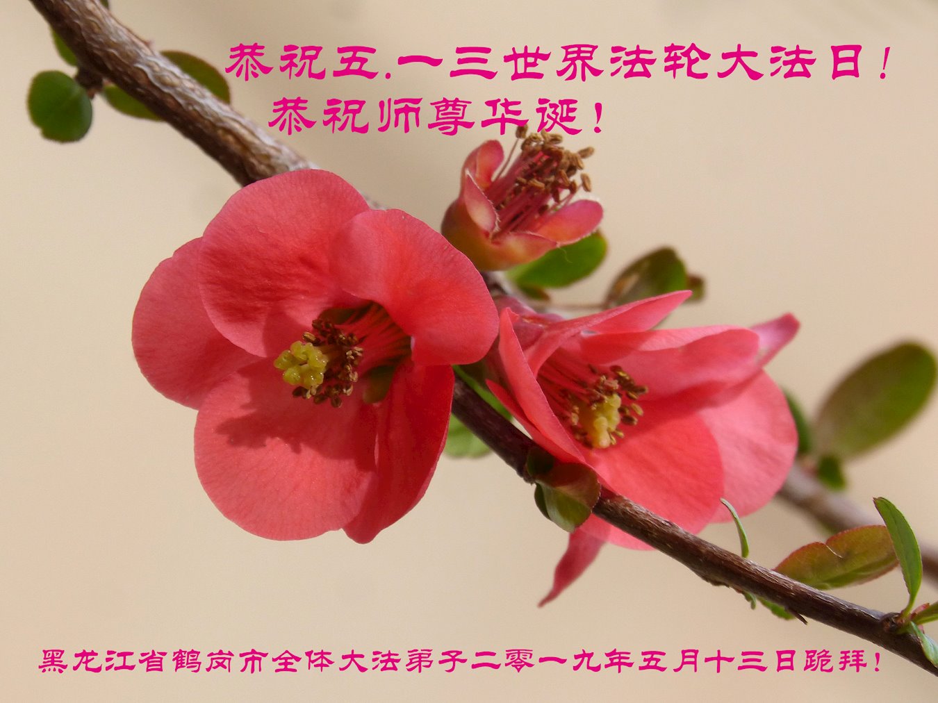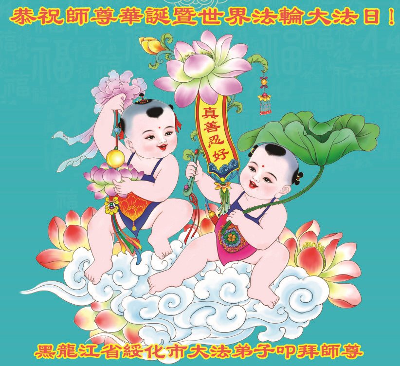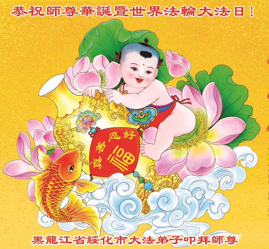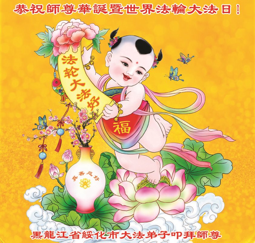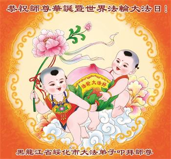 恭祝师尊生日快乐! 己亥年已月 黑龙江弟子 黑龙江省鹤岗市全体大法弟子恭祝世界法轮大法日!
