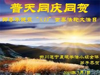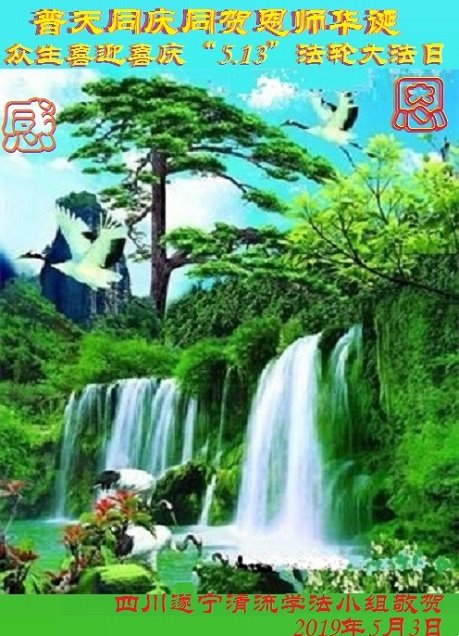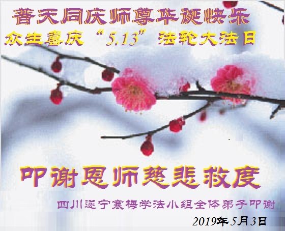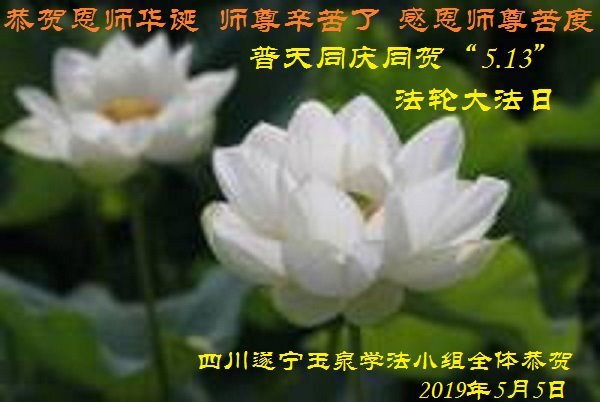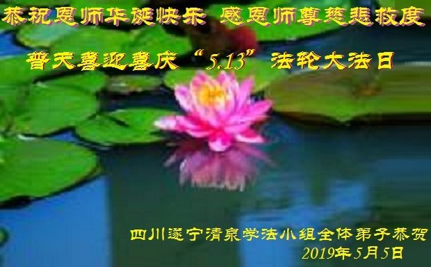 【明慧网二零一九年五月十一日】 四川遂宁大法弟子及家人恭祝世界法轮大法日!
