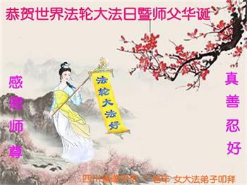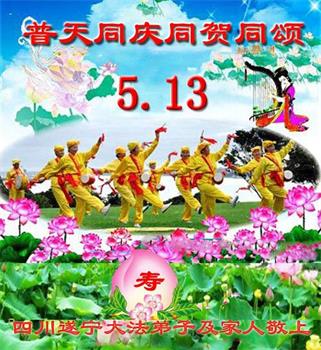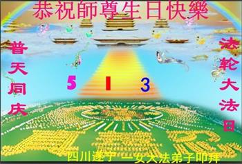 四川省遂宁一老年大法弟子恭贺世界法轮大法日暨师父华诞!