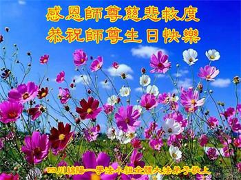 恭祝师尊生日好 天地同庆展新颜 众生得救谢师恩 法正乾坤新纪元 四川攀枝花市一大法弟子及家人恭祝慈悲伟大的师父华诞暨世界法轮大法日!