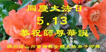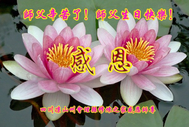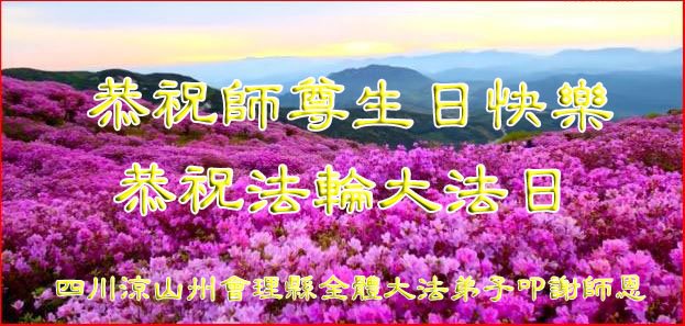 四川省凉山州会理县修炼之家大法弟子及得到大法福报的家人恭祝师父生日快乐!