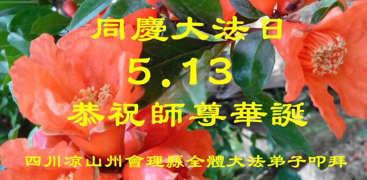 值此法轮大法日及慈悲伟大的师尊华诞,四川省凉山州会理县全体大法弟子恭祝法轮大法日!恭祝师尊生日快乐!在最后的助师正法的时间里,我们一定认认真真的学好法,踏踏实实的修好自己,救度更多的众生。 四川省凉山州会理县全体大法弟子恭祝法轮大法日!恭祝师尊生日快乐!