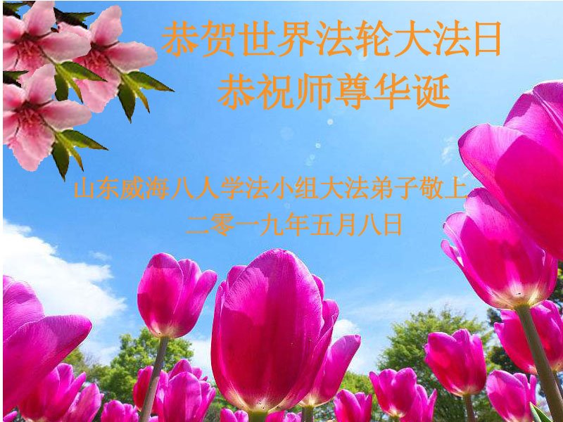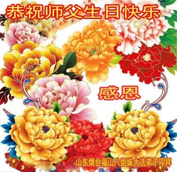 【明慧网二零一九年五月十一日】 山东烟台福山八姐妹大法弟子恭祝师父生日快乐!