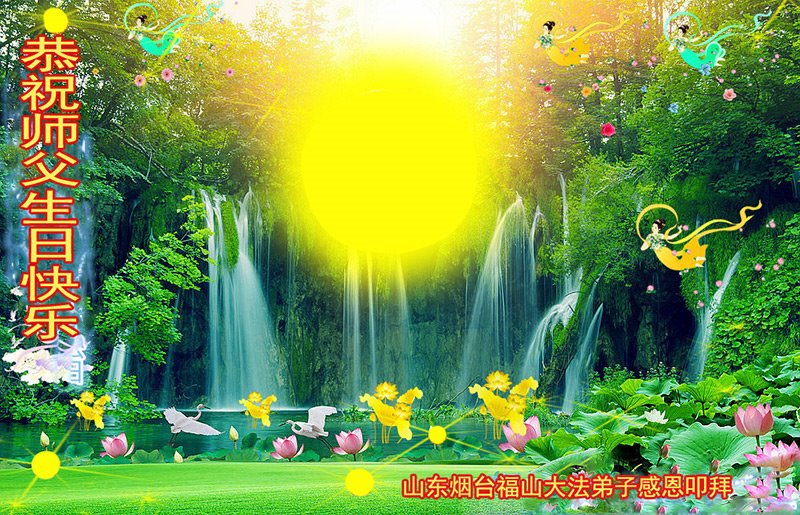 山东烟台福山大法弟子恭祝师父生日快乐!