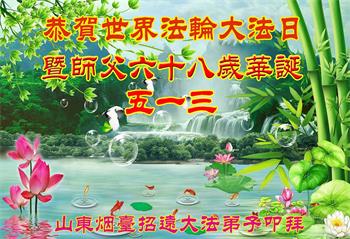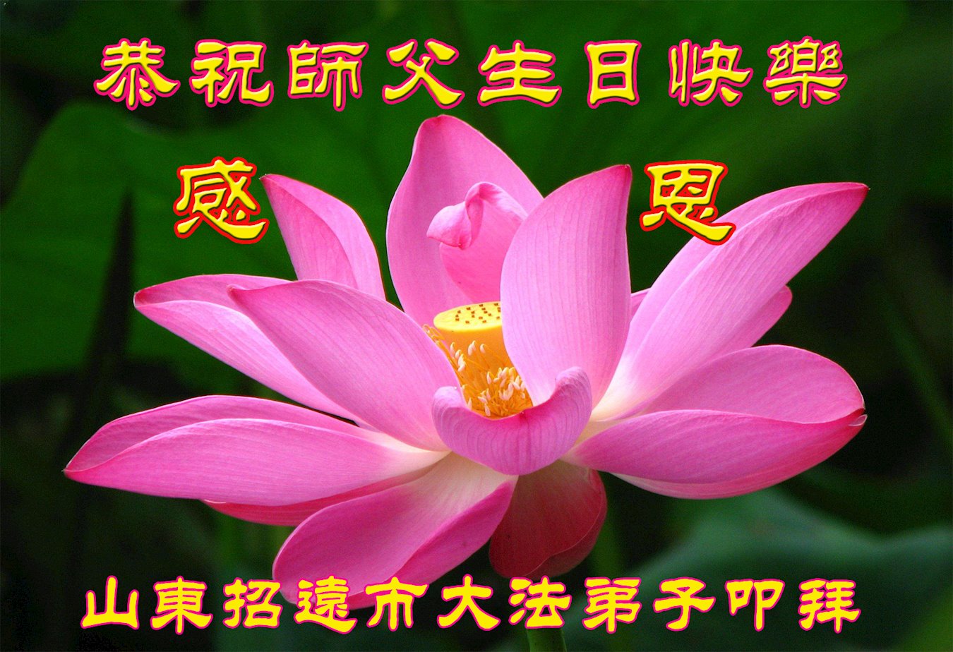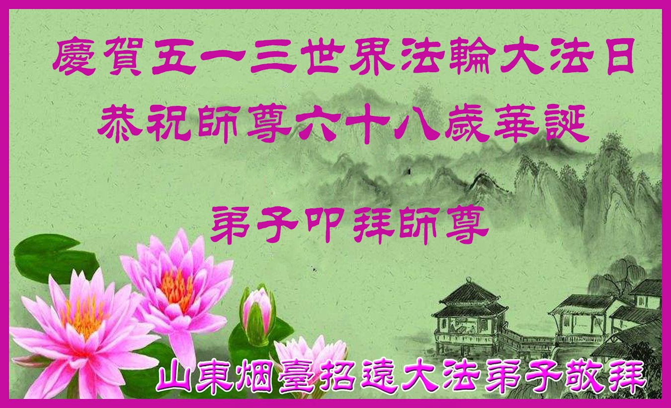 山东淄博淄川区一夫妻同修感恩师尊的慈悲救度,恭祝师尊生日快乐!恭贺世界法轮大法日! 山东省烟台市莱州市一家大法弟子恭祝师尊生日快乐!恭贺世界法轮大法日!
