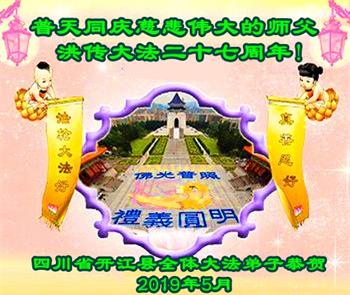 四川省达州市开江县全体大法弟子恭祝慈悲伟大的师父洪传大法二十七周年!