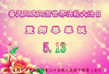 四川省宣汉县大法弟子恭贺“五▪一三”世界法轮大法日!师尊辛苦了! 四川省达州市大竹县大法弟子一家三口恭祝师尊生日快乐!恭贺世界法轮大法日!