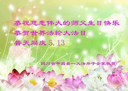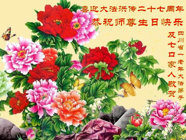 四川省平昌县一大法弟子全家恭祝慈悲伟大的师父生日快乐!恭贺世界法轮大法日! 四川省一老年大法弟子及七口家人喜迎大法洪传二十七周年!