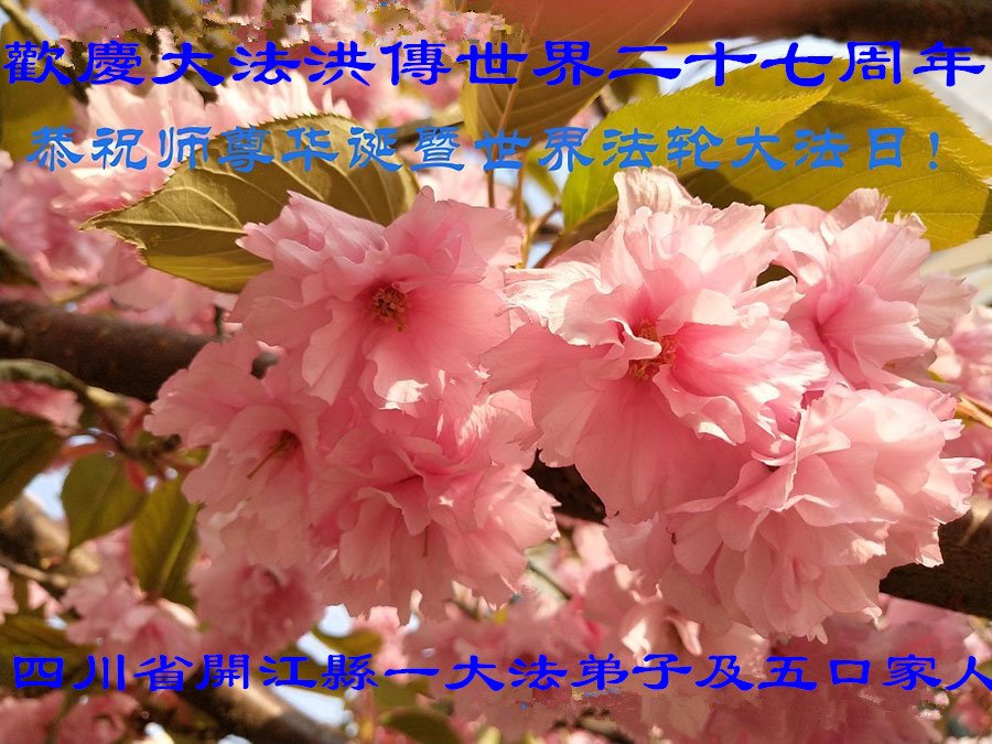 四川省开江县一大法弟子及五口家人欢庆大法洪传世界二十七周年! 恭祝师尊华诞!恭贺世界法轮大法日! 四川省南充市仪陇县全体大法弟子恭贺世界法轮大法日!恭祝师尊生日快乐!