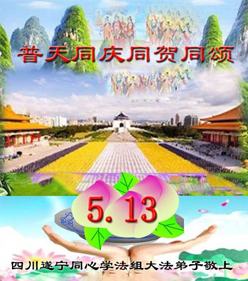 四川遂宁同心学法组大法弟子恭祝世界法轮大法日!