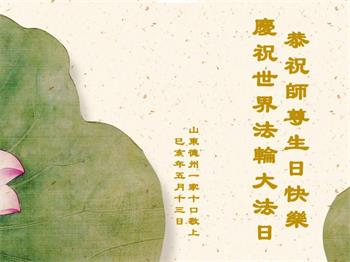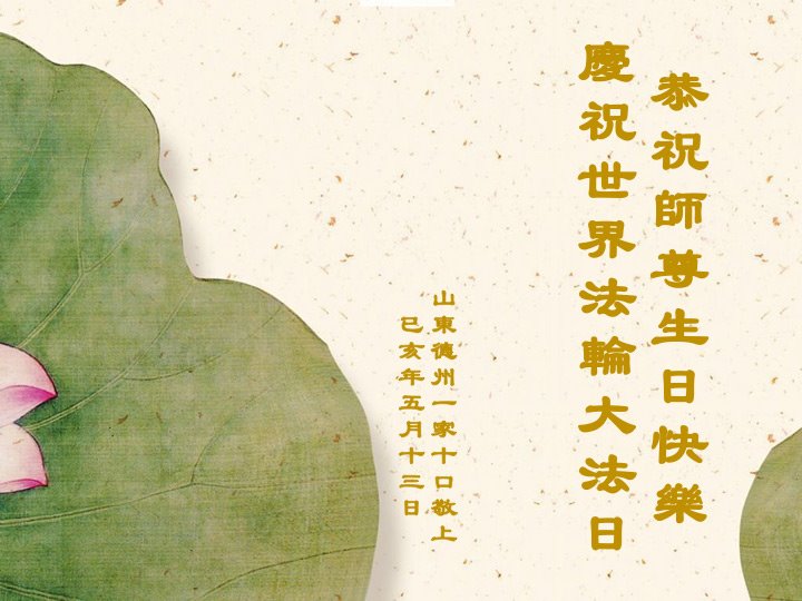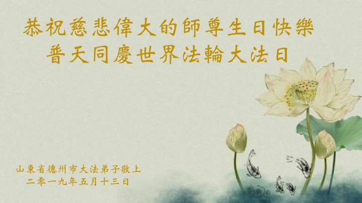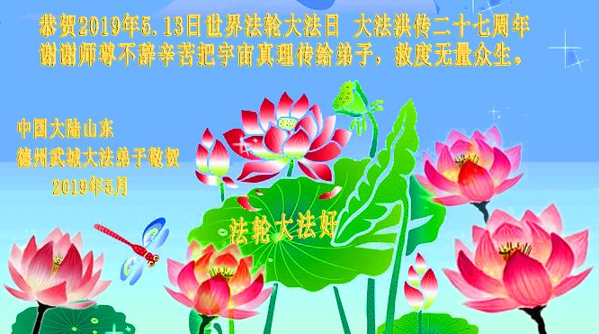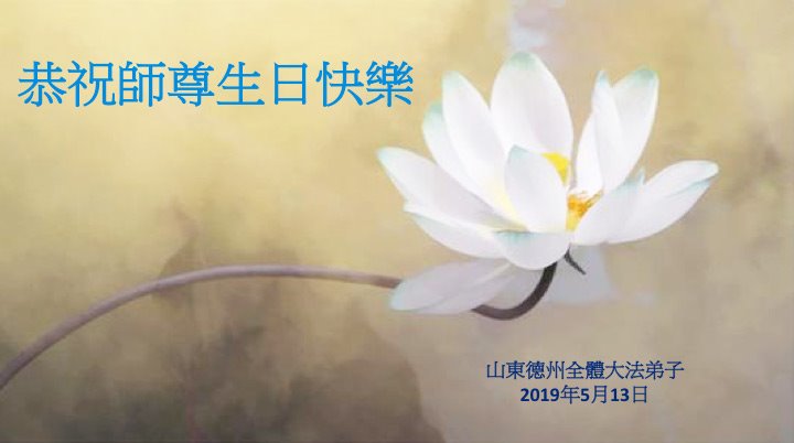 【明慧网二零一九年五月十一日】 山东省德州市大法弟子恭祝师尊生日快乐!普天同庆世界法轮大法日!