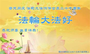 山东省德州市陵城区大法弟子恭贺法轮大法日!恭祝师尊生日快乐!