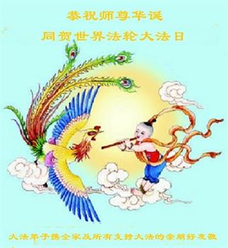 二十年来,法轮功学员在反迫害中持之以恒地讲真相、揭露中共的邪恶,越来越多的世人觉醒,支持法轮大法,退出中共党团队组织,为自己选择了美好的未来。 吉林延边明真相的一家人感恩李大师慈悲救度,恭祝李大师生日快乐!同庆世界法轮大法日!牢记“法轮大法好,真善忍好”! 一大法弟子家属祝法轮大法师父生日快乐!