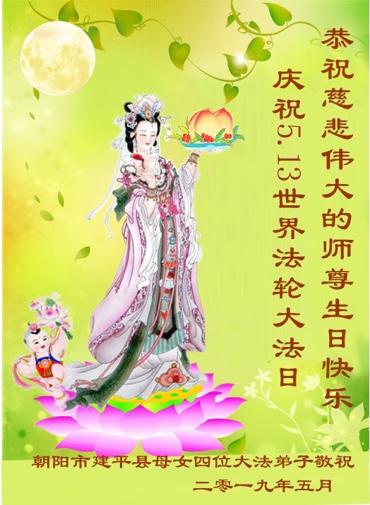 辽宁省朝阳市凌源市母女大法弟子恭祝慈悲伟大的师尊生日快乐!恭贺5月13日世界法轮大法日!