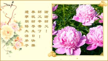 【明慧网二零一九年五月十一日】 辽宁朝阳大法弟子恭祝师尊生日快乐!